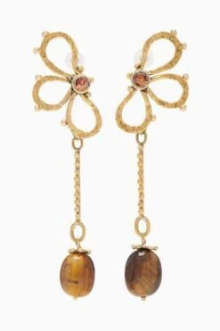 Ulla JohnsonHammered Chain Flower Drop Earring – Tiger’s Eye