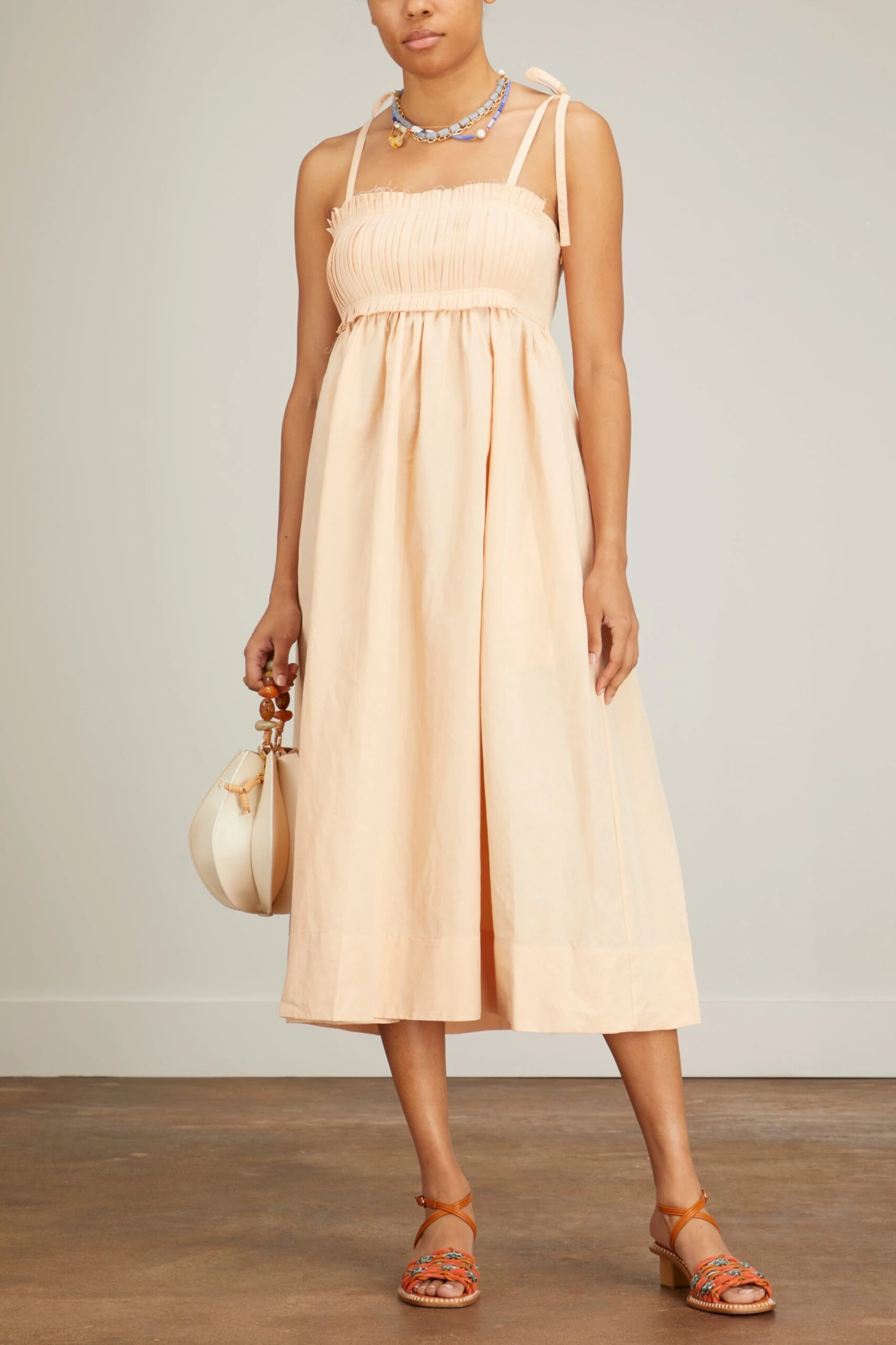 the Ulla Johnson Laetitia Dress will be a staple in your spring and summer wardrobe. This linen blend dress features a flattering empire waistline with a plated bandeau and tie shoulder straps. Wear yours with sandals and a tote bag.