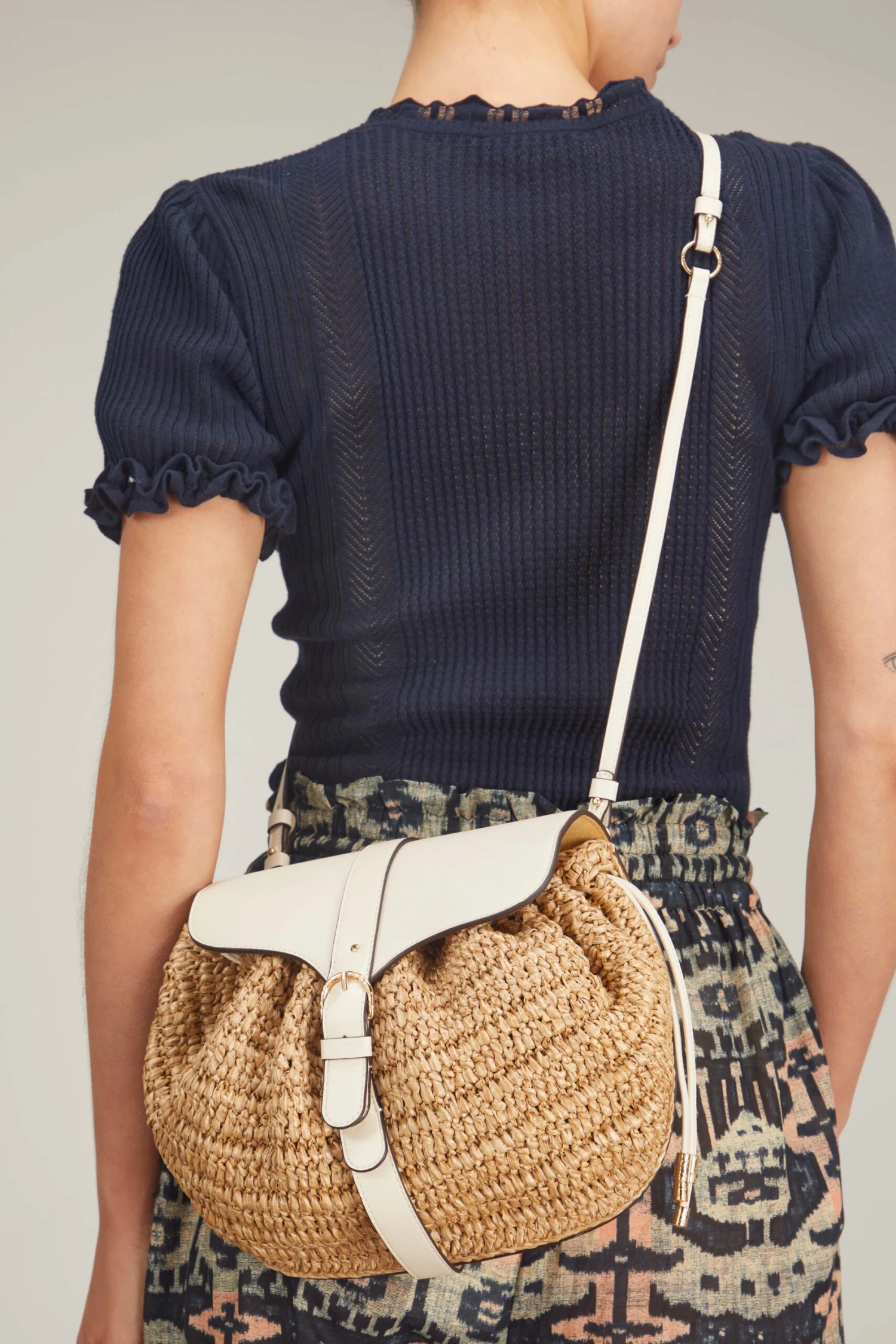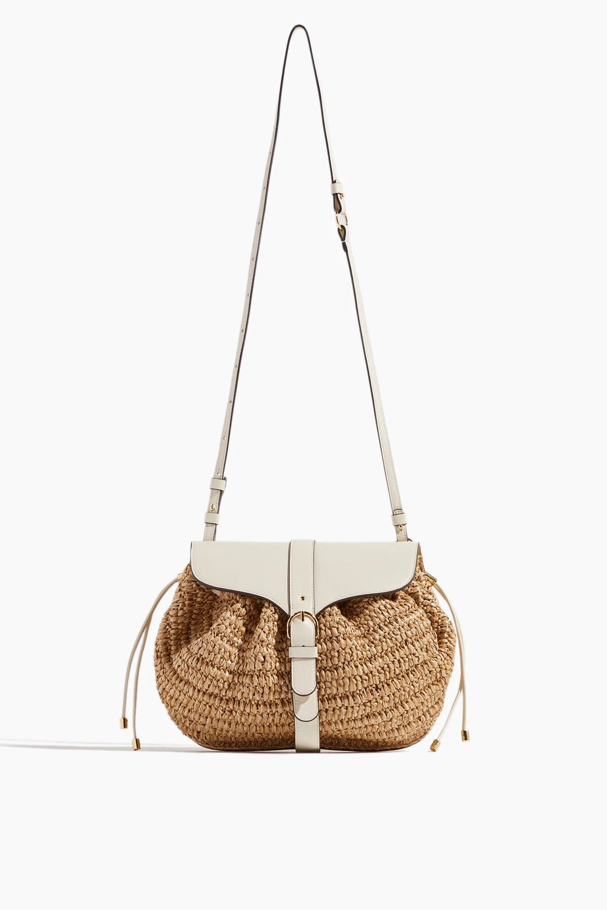 The Ulla Johnson Paloma Ruched Convertible Shoulder Bag will be a staple in your spring and summer wardrobe. This crossbody bag is crafted in raffia with a leather closure.