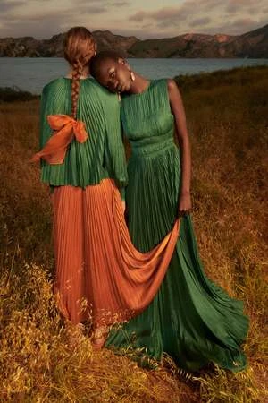 As featured in Look 10 of the Pre-Spring 24 Lookbook, the Aidy Blouse is made from the most-loved pliss satin in a rich jewel-tone green. This round-neck blouse has a fluid silhouette and long sleeves that are defined by elegant smocking at the cuffs. It is finished with a center-back keyhole.